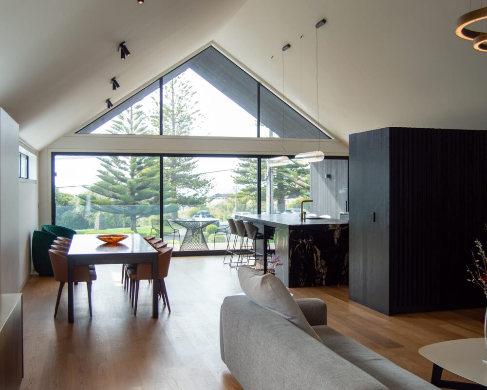 An amazing black cedar and Corten steel masterpiece, with all of the living upstairs with a huge vaulted ceiling it looks out over the Sumner beach. Oak floors throughout with a stunning downstairs living area downstairs with a perfect bar leading to the pool and bar area.